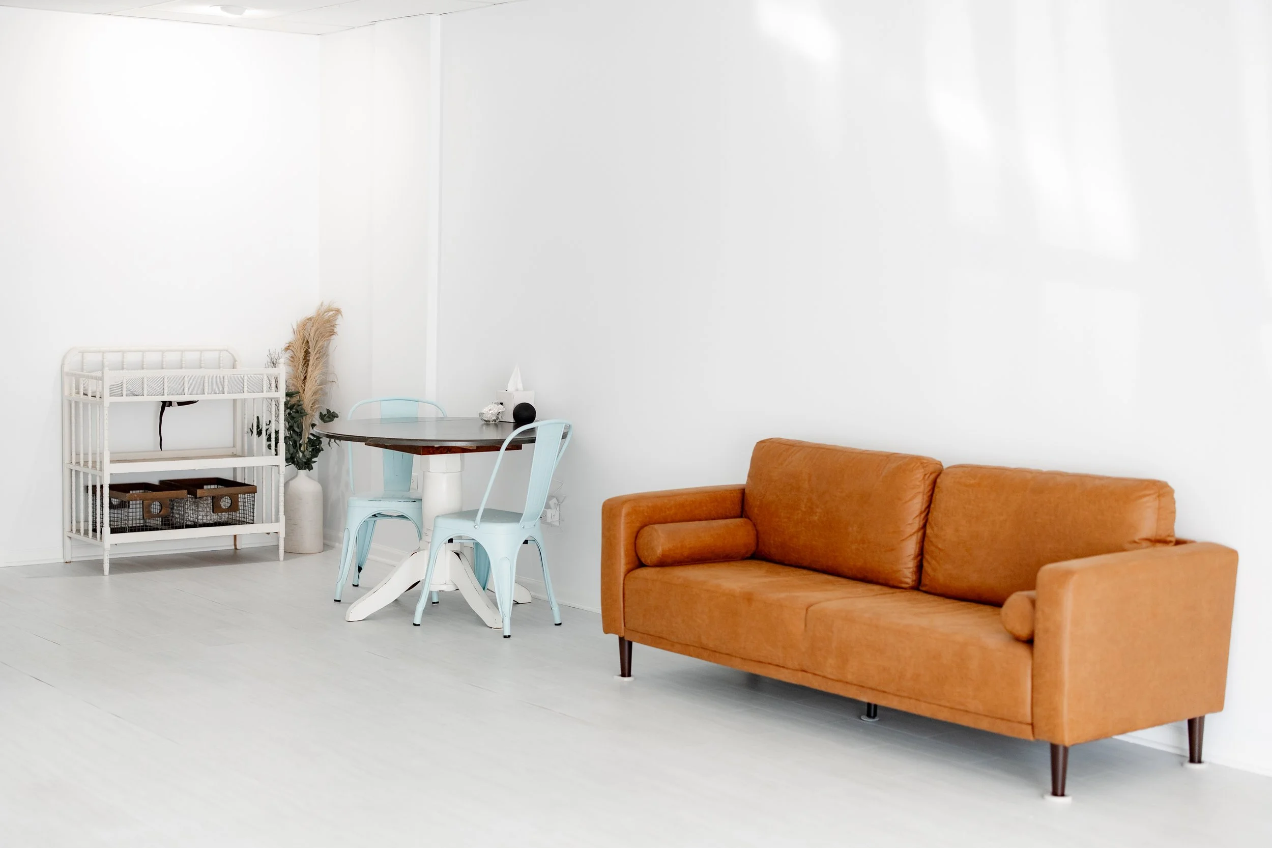 Plenty of comfortable seating and room for parents to spread out, relax, and watch while I photograph their baby
